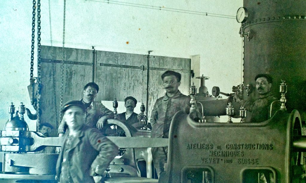 La micro-centrale hydroélectrique gérée ici aux Berges de Vessy a été construite en 2007. Avant ça, il y avait déjà une station de pompage, construite en 1866. Elle servait à actionner les turbines hydrauliques.
